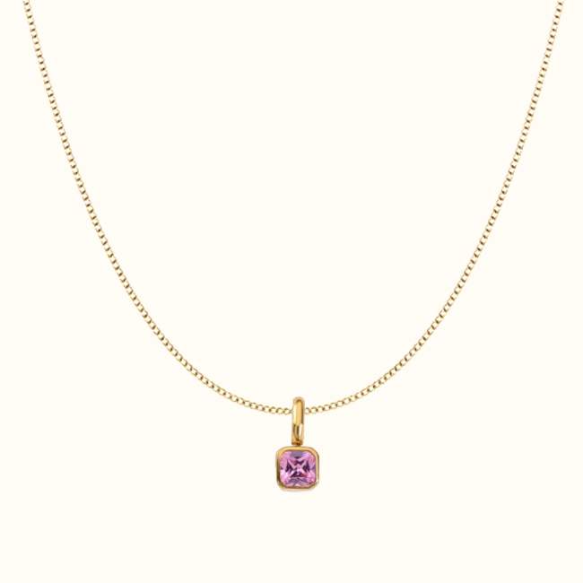 Deze elegante ketting met vierkante geboortesteen hanger is een verfijnd sieraad met een persoonlijke betekenis. Het subtiel fonkelende hangertje staat symbool voor een bijzondere maand en geeft de ketting een warme, luxe uitstraling.